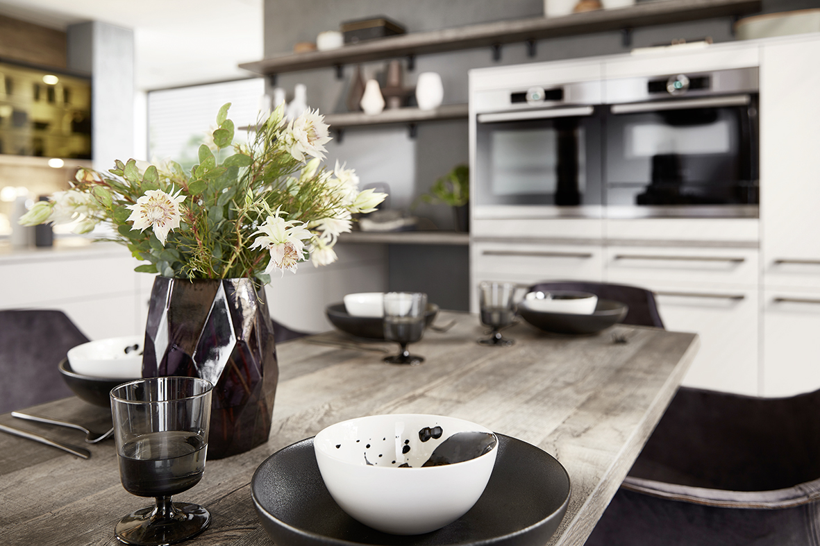 Inclusief 2x RVS-inbouwoven Siemens HB510ABR1 Energieklasse A, keramische kookplaat met inductie en werkbladafzuiging (circulatielucht) Bora GP4U, koelkast Progress PK0813 Energieklasse F, volledig geïntegreerde vaatwasmachine Progress PV1548 Energieklasse E, RVS-inbouwspoelbak Rodi NewManaus, wandkasten met klapdeur, XL-kasten.