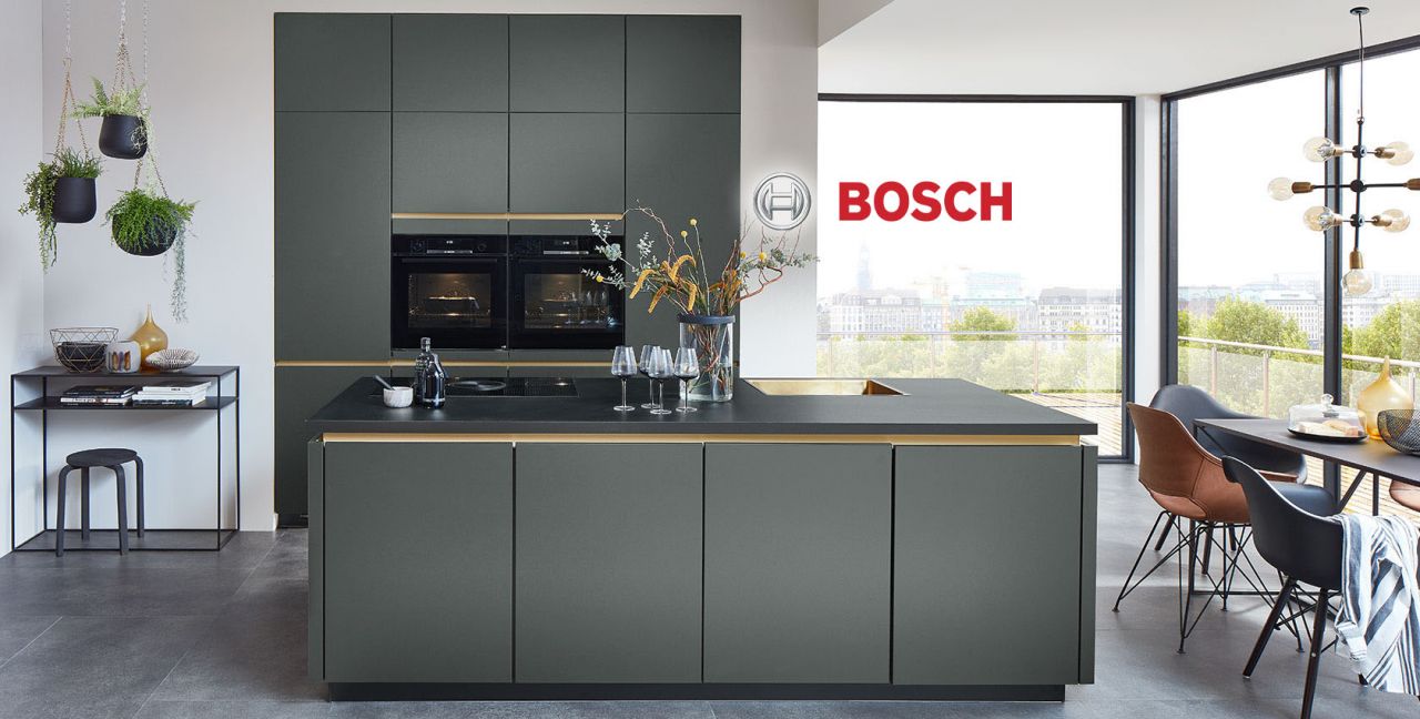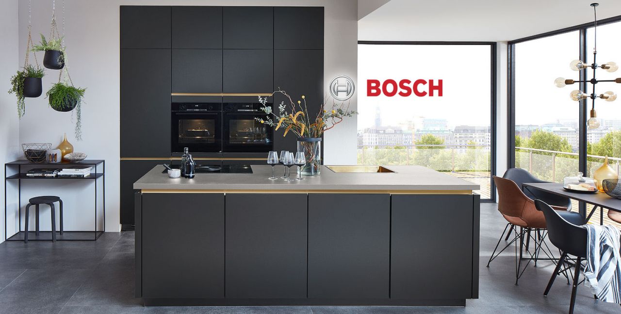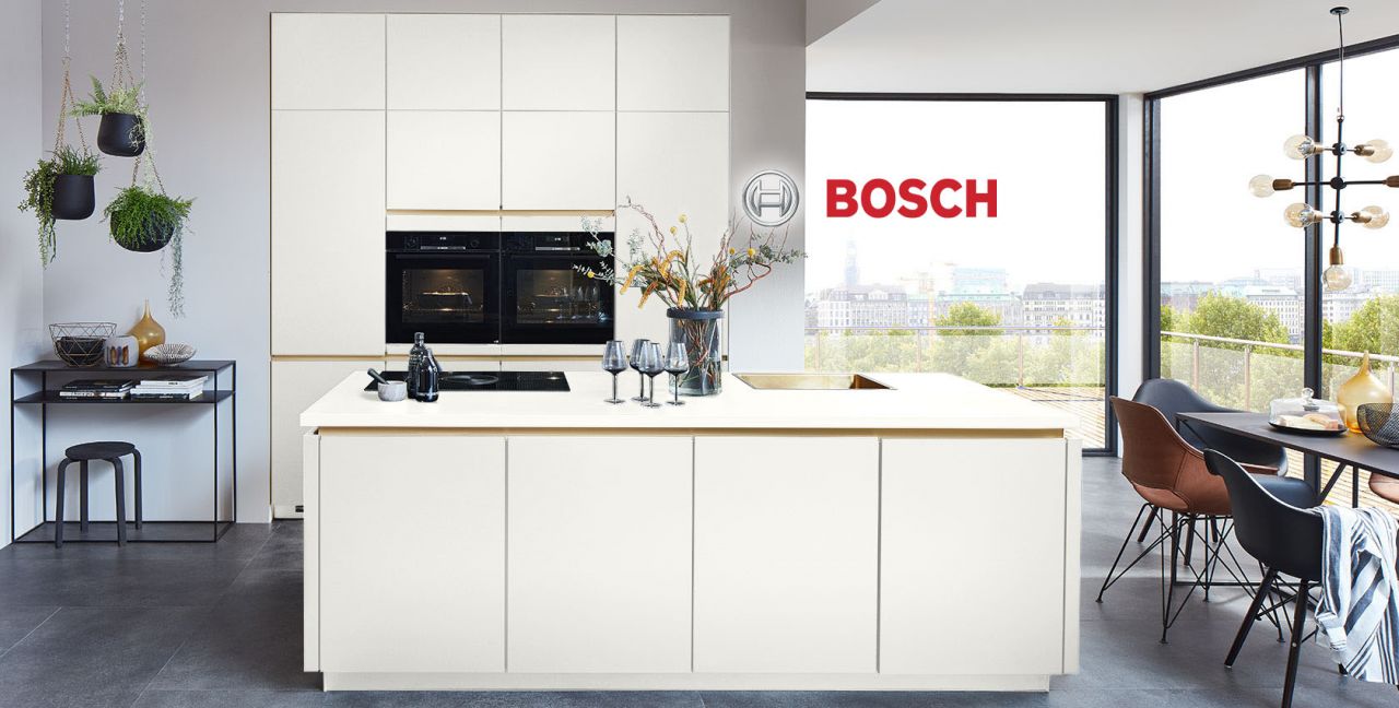 Inclusief inbouwoven zwart Bosch HBG5780B6 Energieklasse A, keramische kookplaat met inductie en werkbladafzuiging (circulatielucht) Bora GP4U, koelkast met ****vriesvak Junker JC40GBF0 Energieklasse F, volledig geïntegreerde vaatwasmachine Junker JS55X01ITE Energieklasse E, RVS-inbouwspoelbak Teka Flexlinea, XL-kasten.